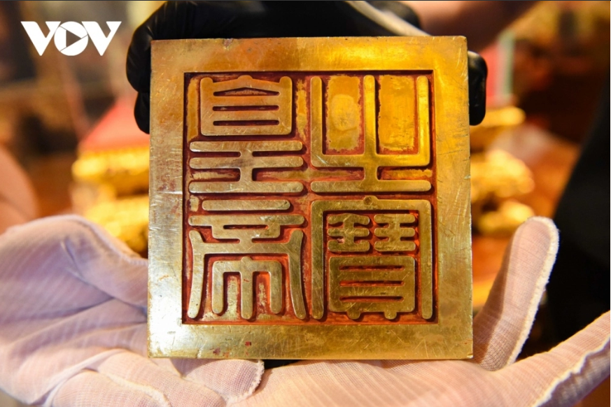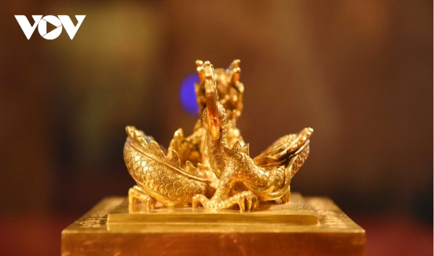 The Nguyen Dynasty's gold imperial seal was handed over to Vietnam at a ceremony held at the Vietnamese Embassy in France on November 16, 2023 |