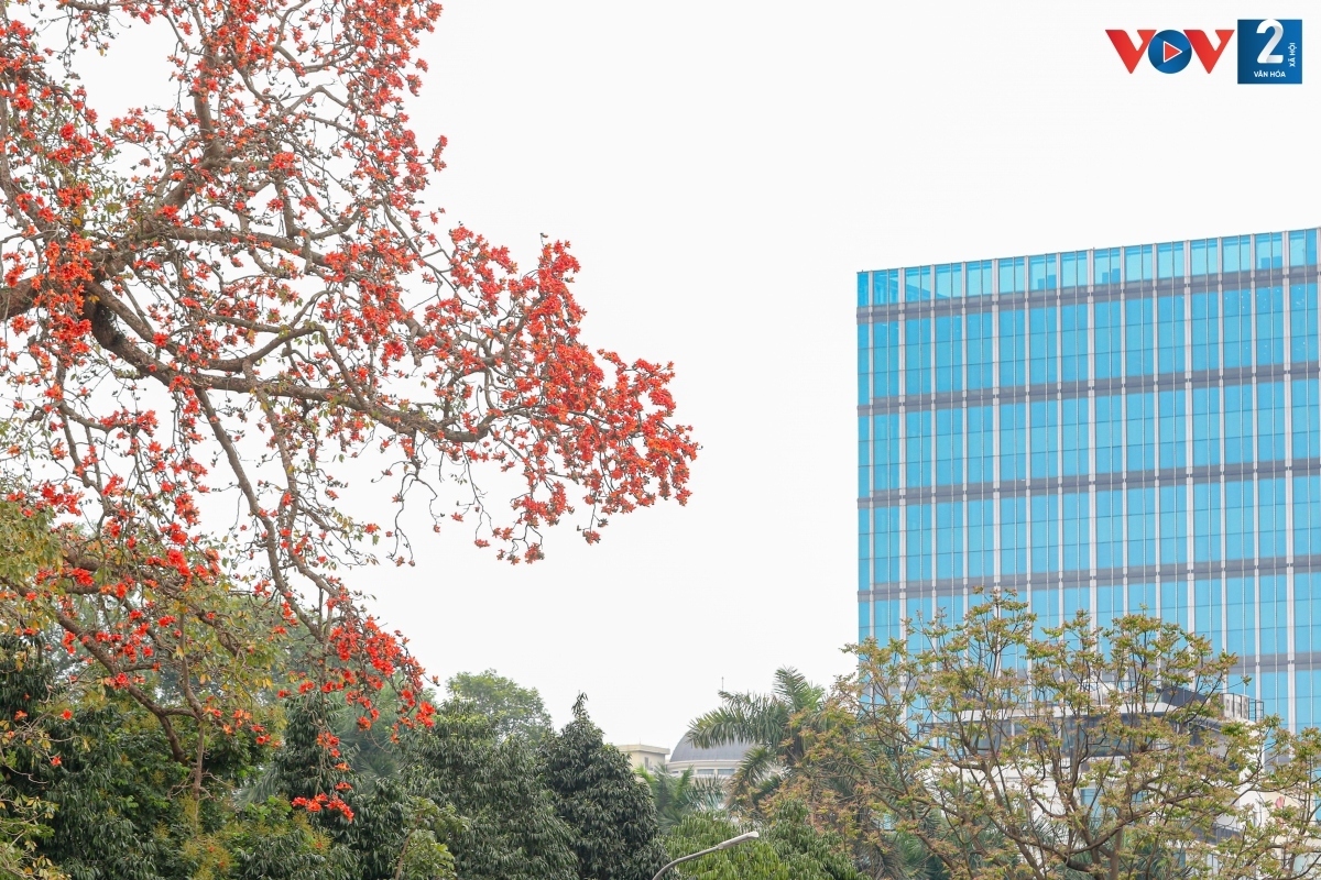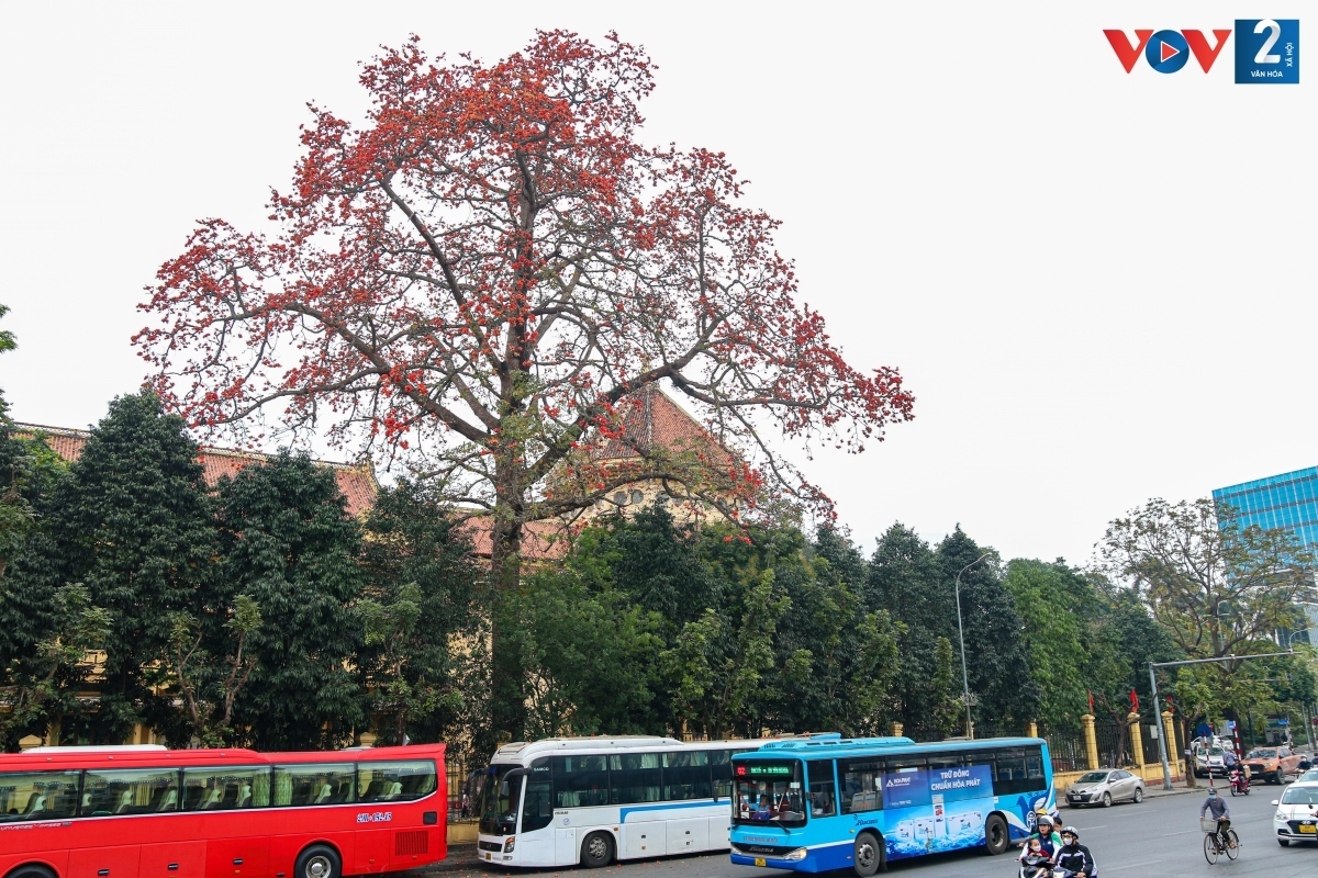 Bombax ceiba in full bloom at Giai Phong-Phuong Mai crossroads, Hanoi |