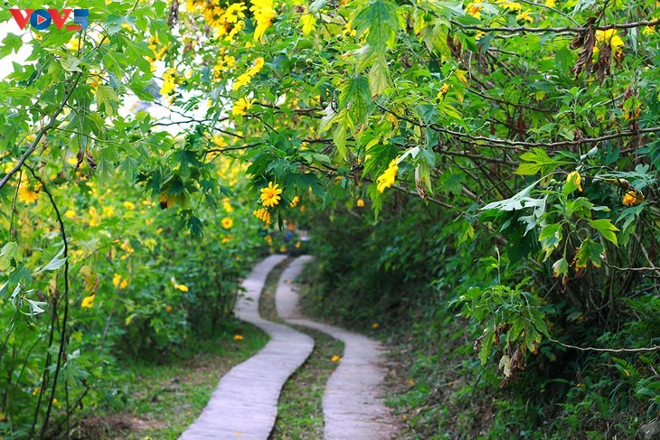 Beautiful yellow flowers attract more visitors to Ba Vi National Park. |