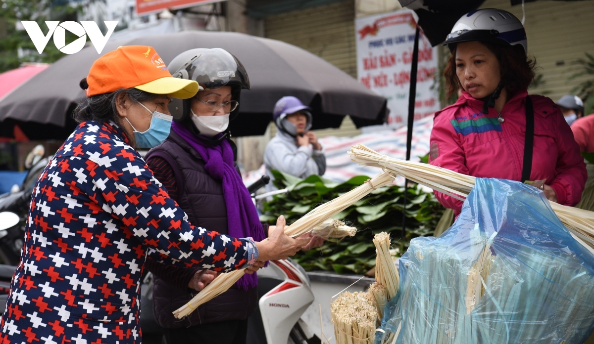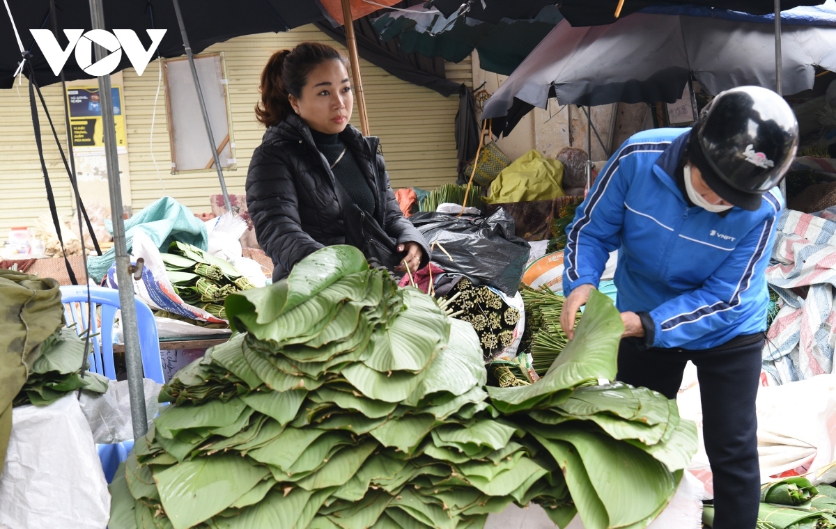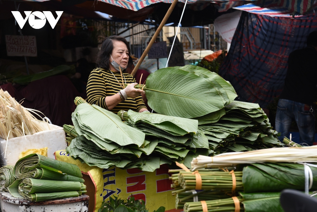 Traders sell thousands of Dong leaves and bamboo strings every day as they are the main items used to wrap Chung cakes, a traditional cake present in every Tet meal of Vietnamese people.