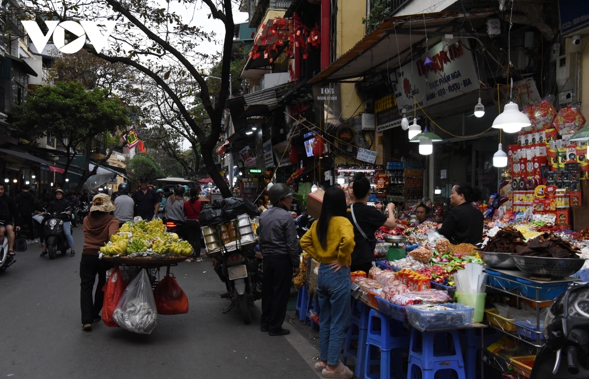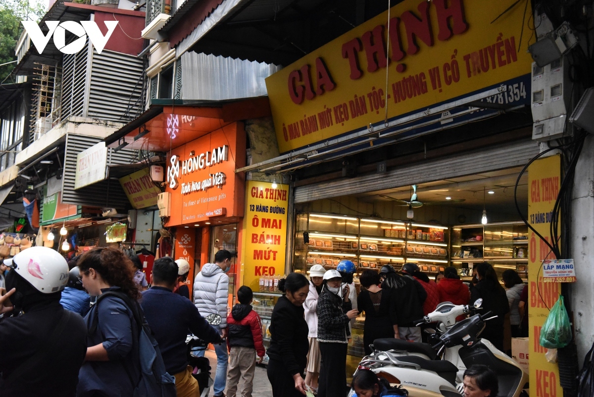 Customers line up in front of the stall on Hang Duong street as they prepare for Tet