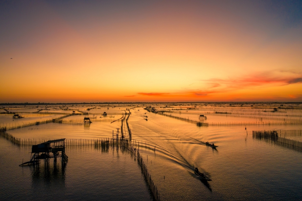 Chuon Lagoon covers 100 hectares and is a part of the Tam Giang brackish water lagoon system. The site is in Phu An commune of Phu Vang district in the central province of Thua Thien Hue. The lagoon's picturesque landscapes enthrall visitors, with the sunrise taking the spotlight, literally (Photo: thanhnien.vn) |