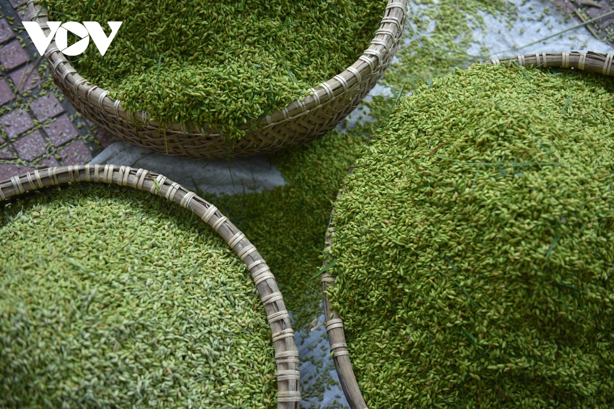 | These days visitors to Me Tri village can smell the soft fragrance of rice in every corner. |