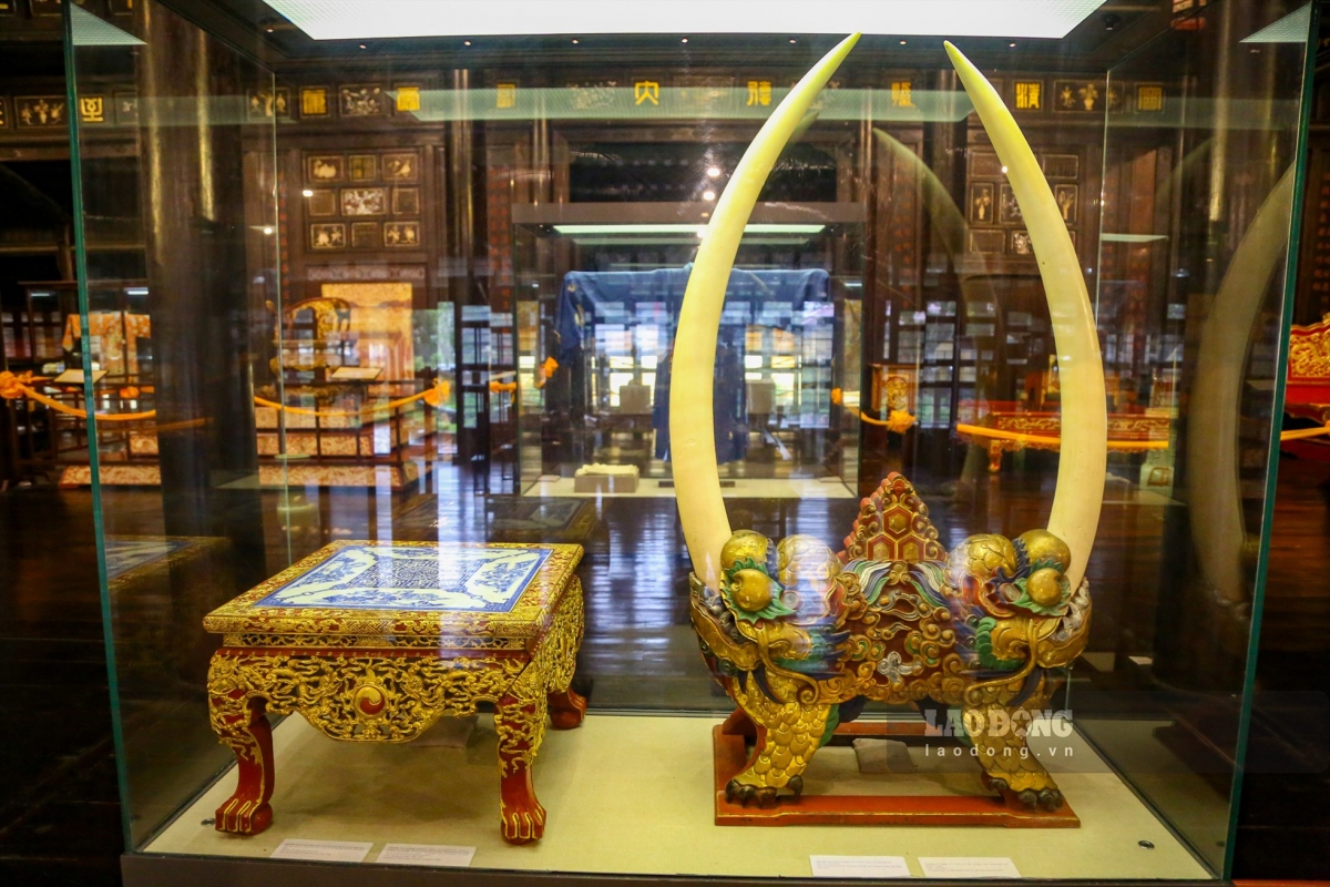 A pair of ivory tusks used as decoration in the palace of the Nguyen Dynasty is about 1.2 metres long.