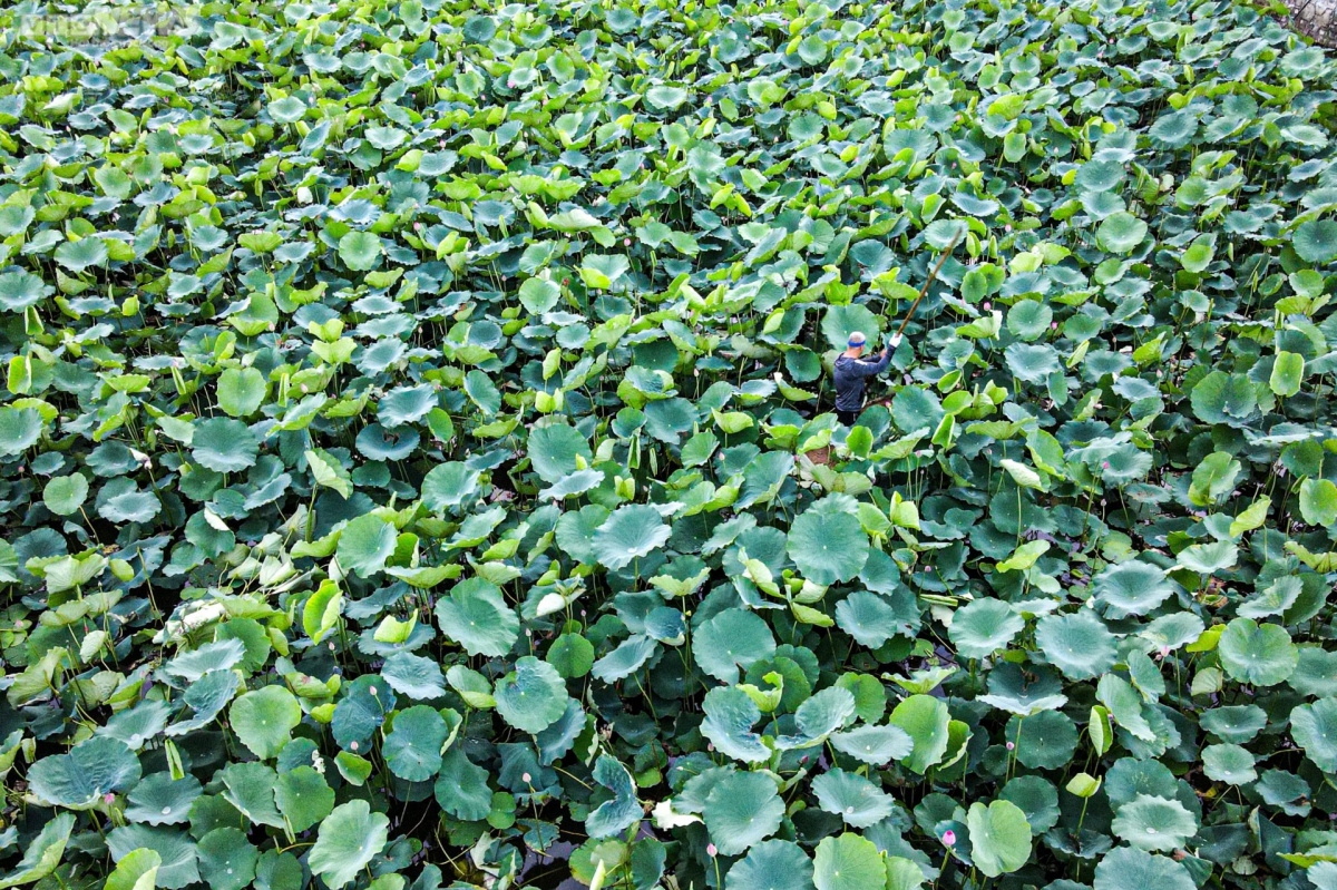 A local villager is busy harvesting lotus to meet the growing demand in summer.