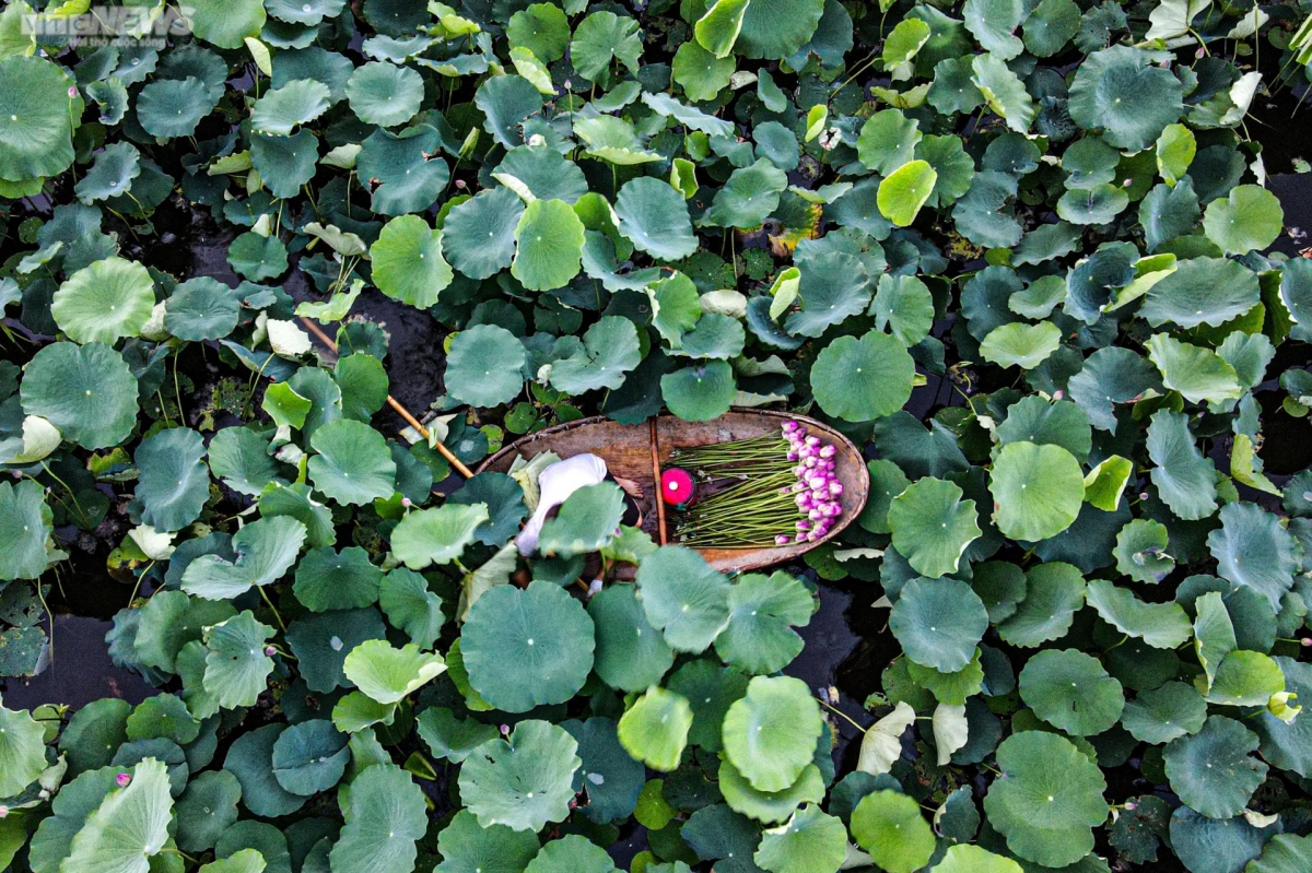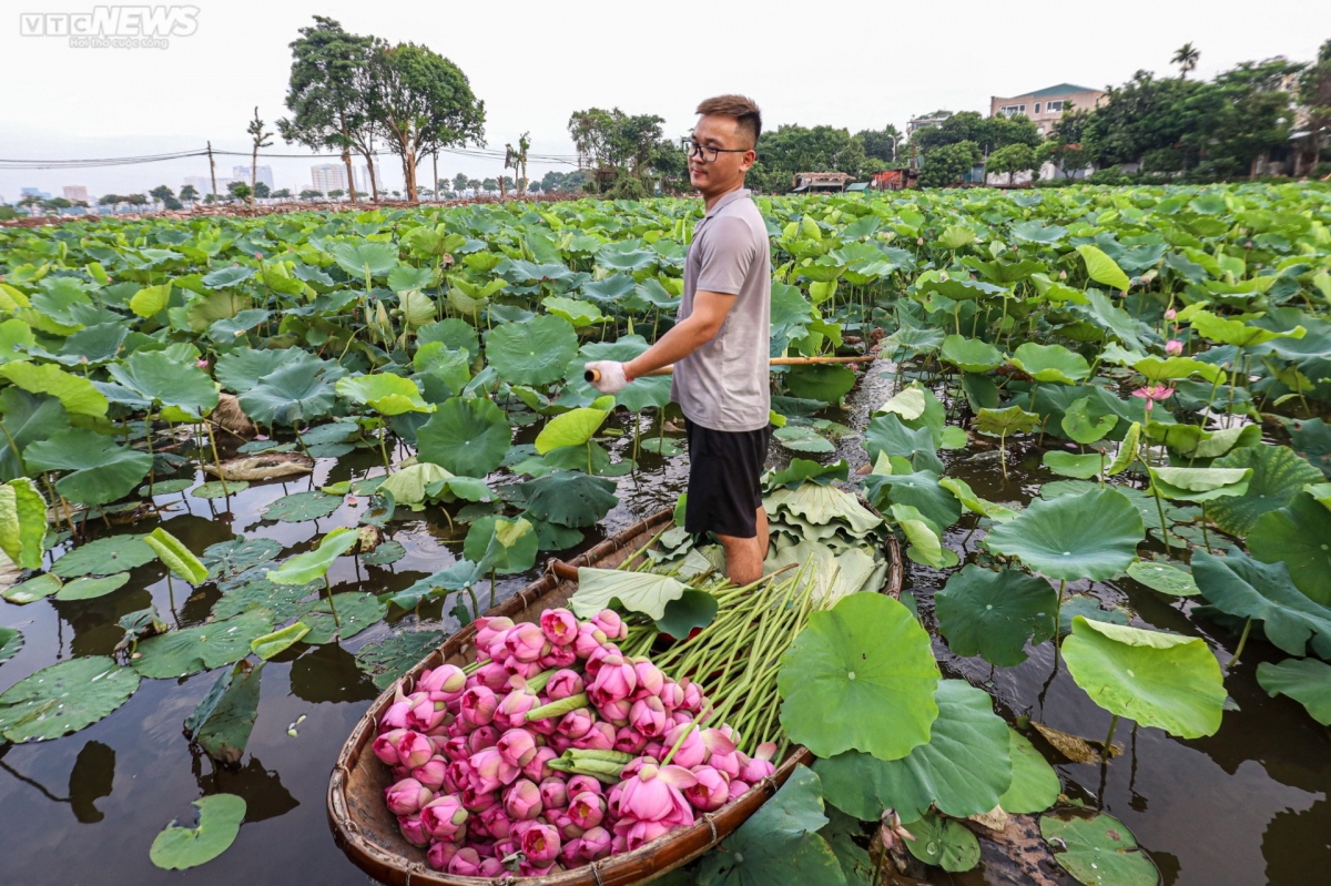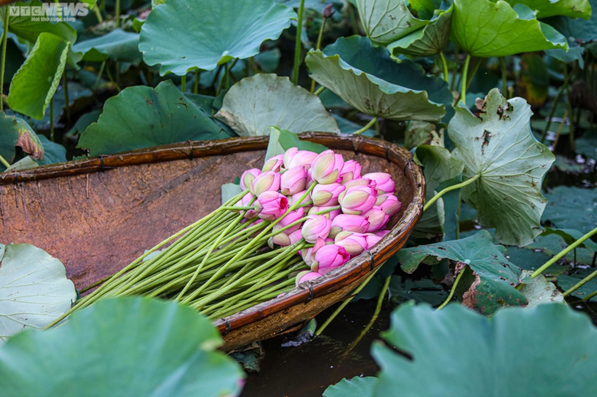 Early morning in summer, local villagers bring back home lotus flowers which they pick from the West Lake in Tay Ho District.