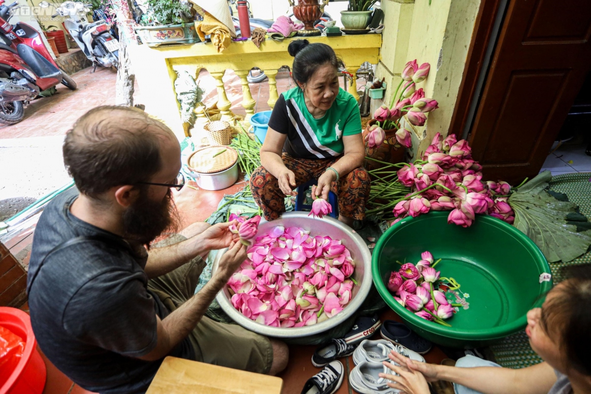 An American tourist joins making lotus tea.
