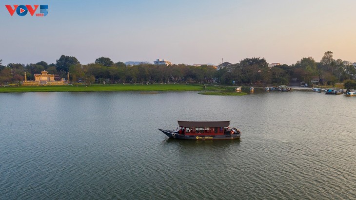| Taking a boat trip on the Huong River, listening to royal court music, and admiring the poetic natural scenery along the banks offers a comprehensive experience for visitors when coming to Thua Thien Hue. |