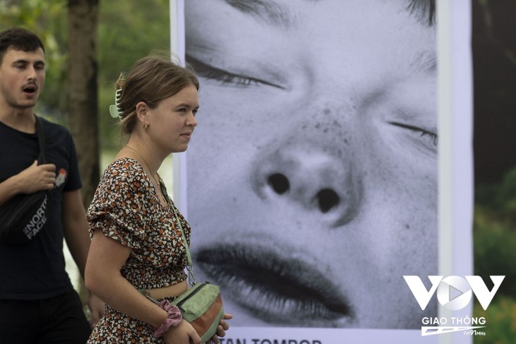 A photo exhibition on the pedestrian street at Hoan Kiem lake. |