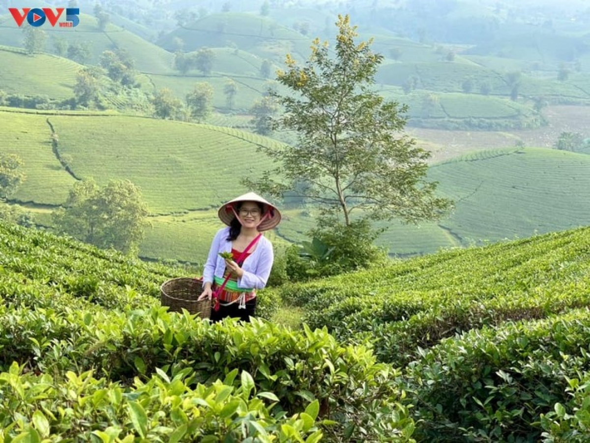 | Tourists can enjoy taking unique photos of the tea hills whilst discovering the unique culture of the local Muong ethnic group. |