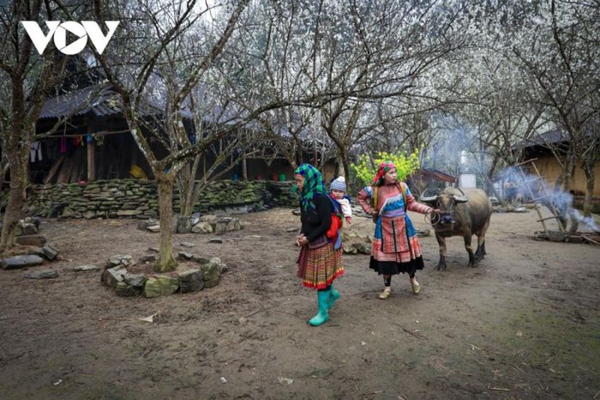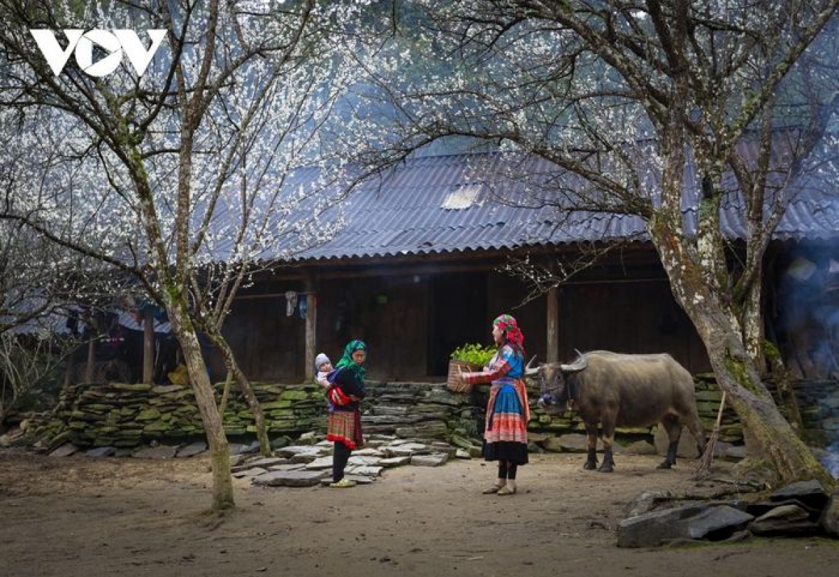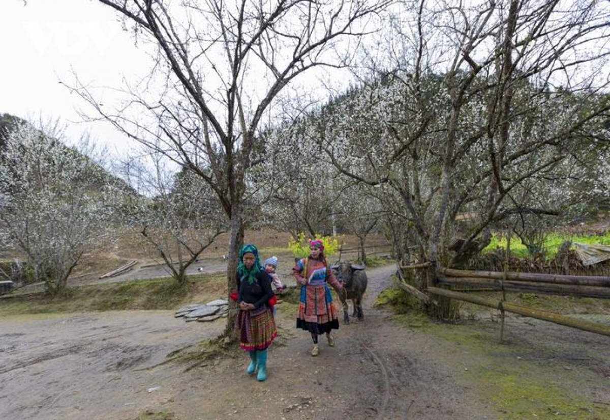 These days, the Bac Ha Plateau is immersed in the white color of plum flowers blossom. |
