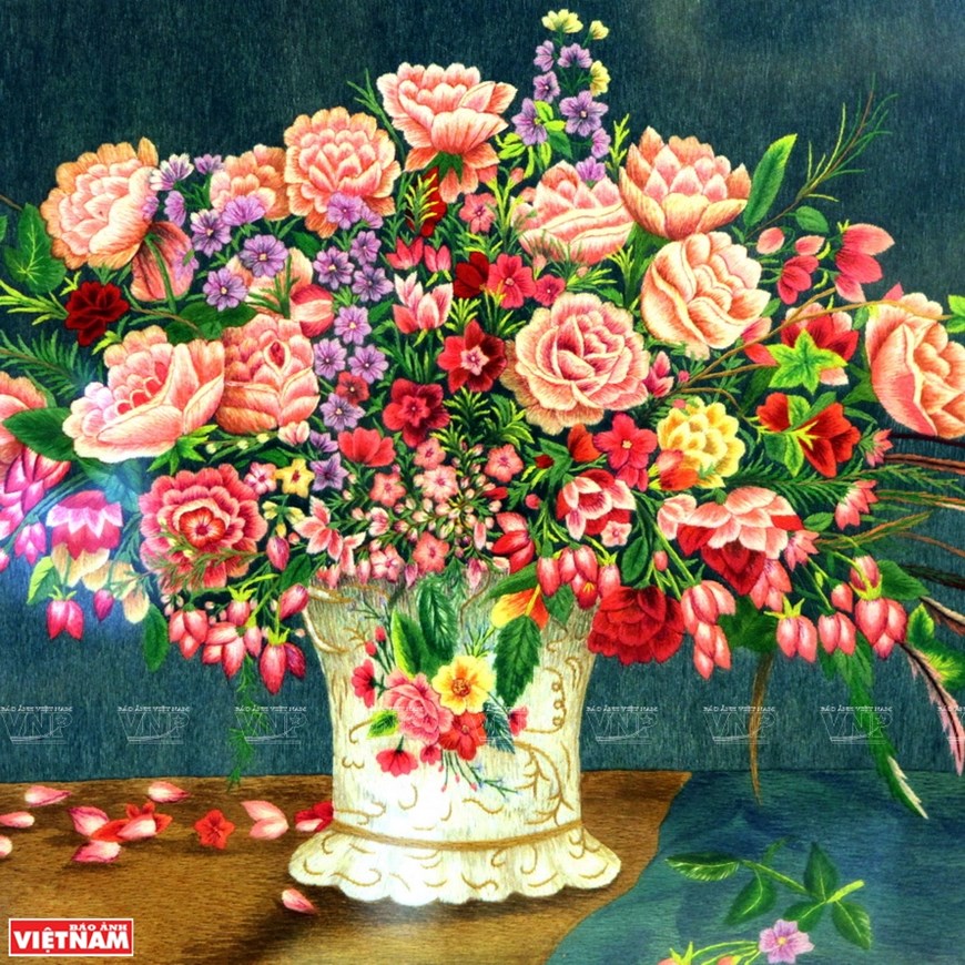 After the 17th century, Quat Dong embroidery spread nationwide, making Hanh the master of Vietnamese embroidery.