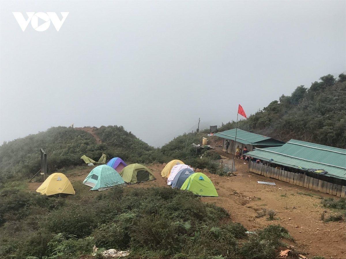 Travelers set up camp outdoors at Ta Chi Nhu peak as they chase clouds and take photographs of wild violet-coloured flowers in the early morning. |