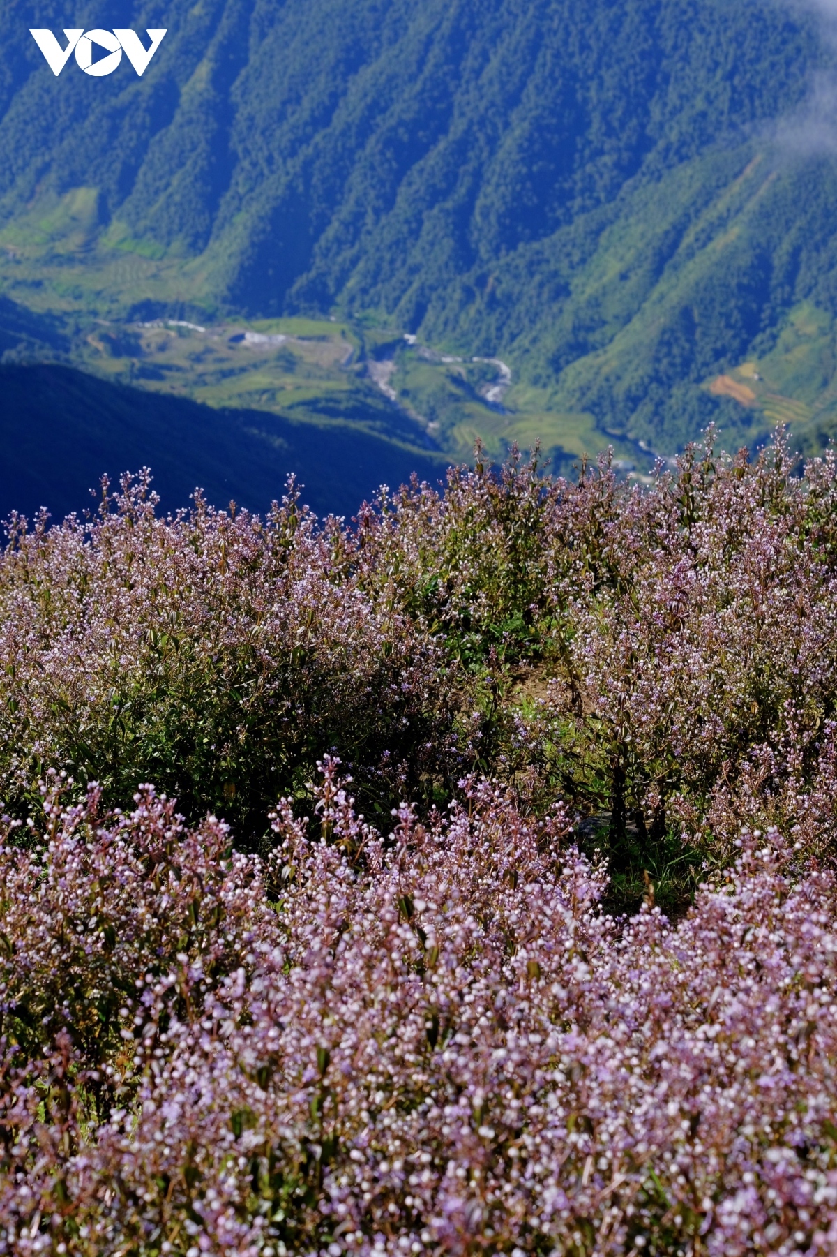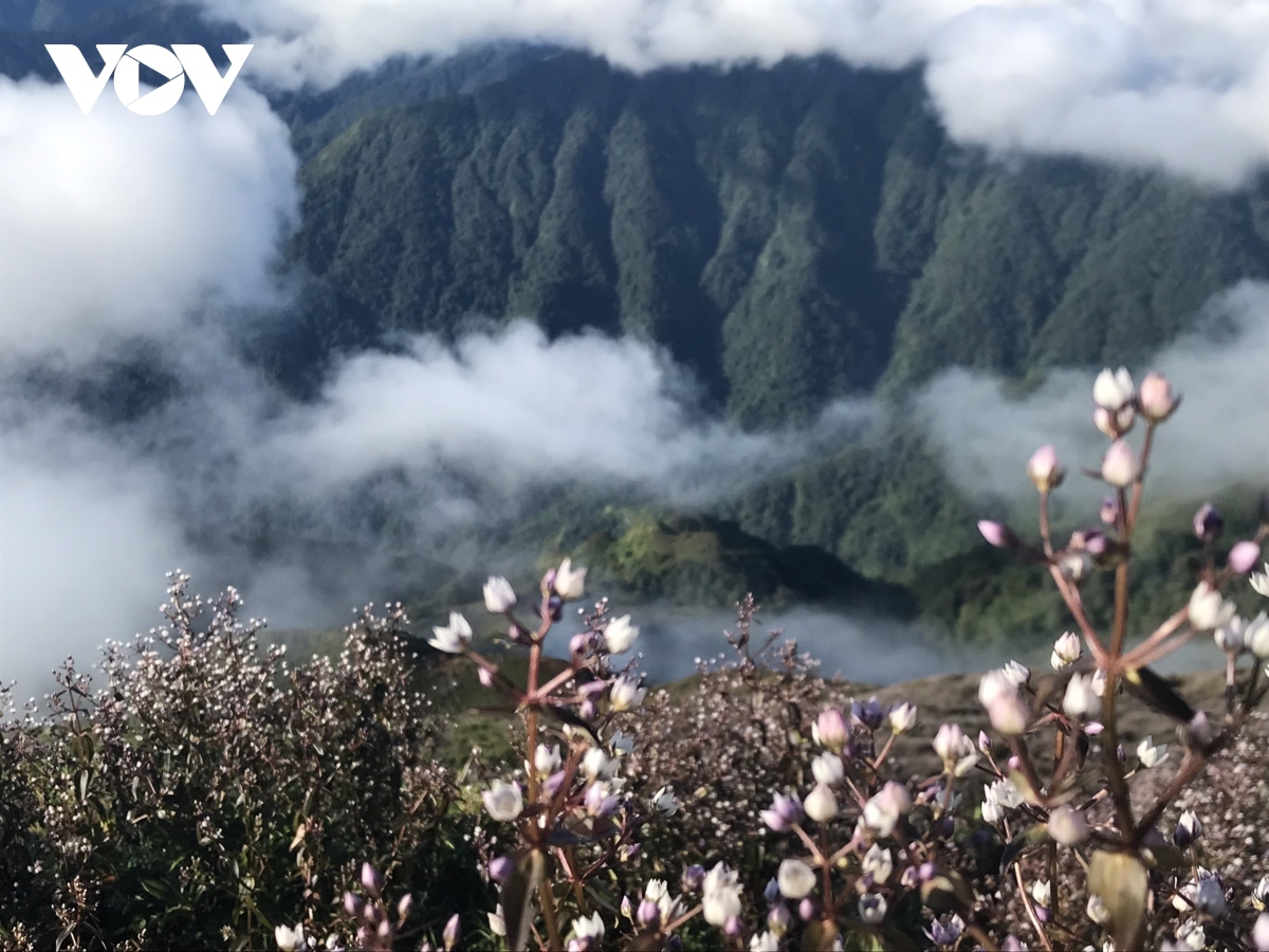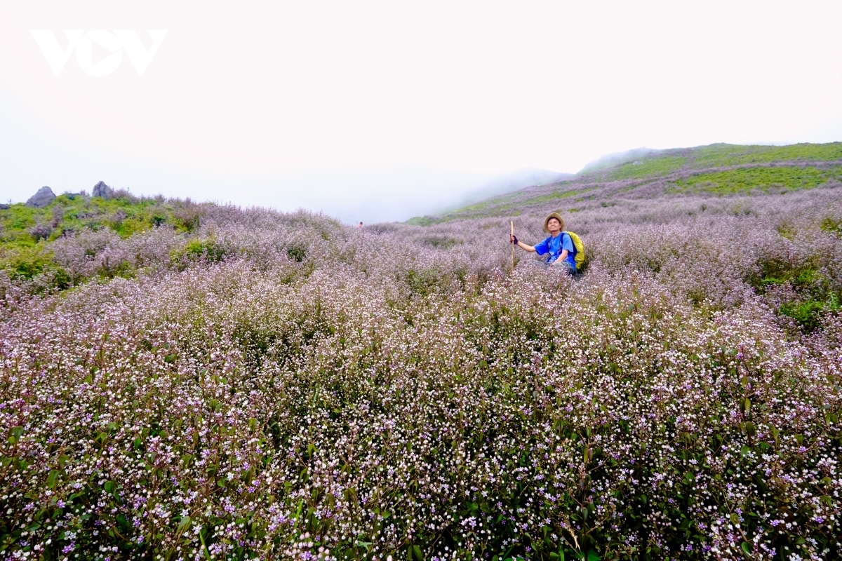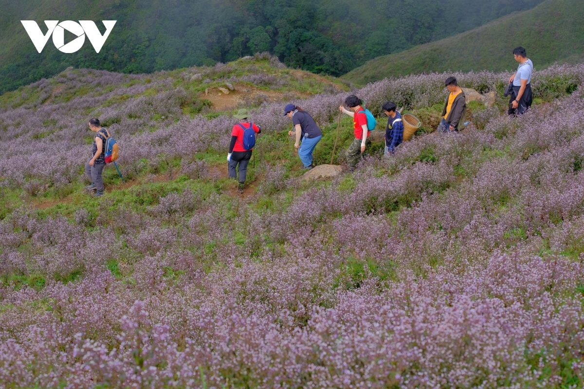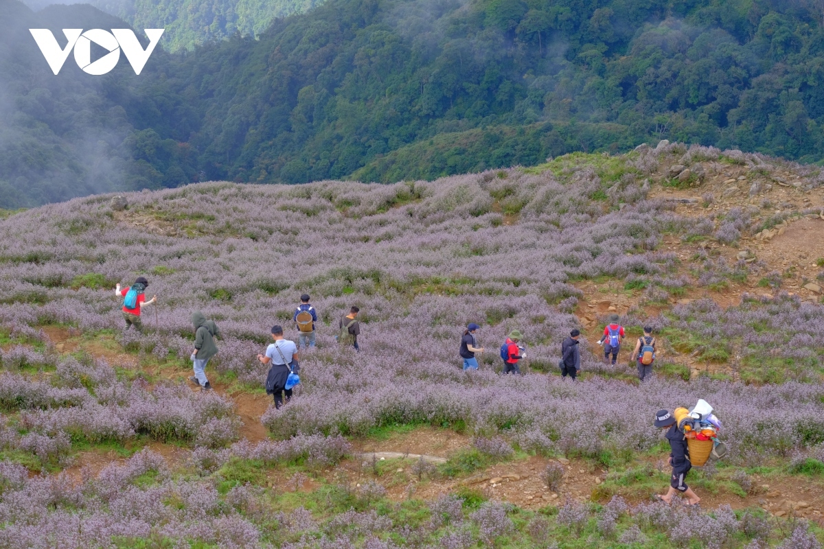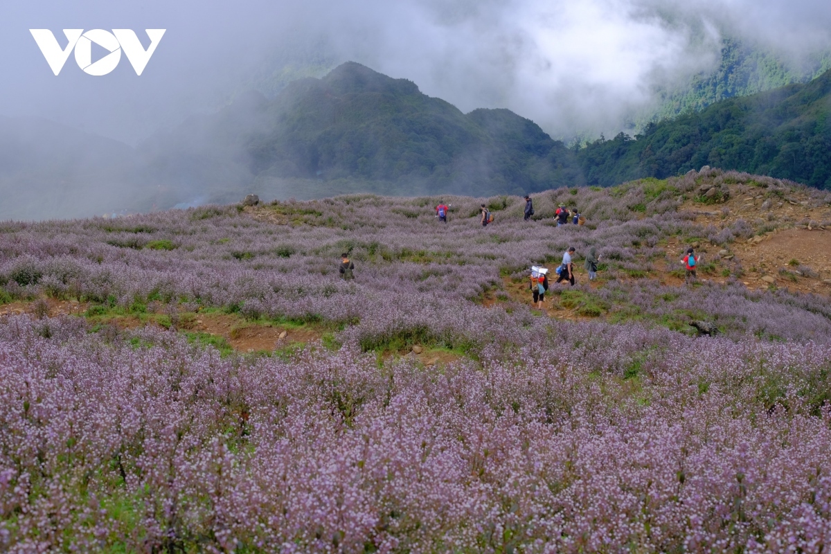 Travelling along the slopes on the way to Ta Chi Nhu peak, tourists are left surrounded by wild violet-coloured flowers called chi pau, meaning "unknown" in the ethnic H’Mong language. |