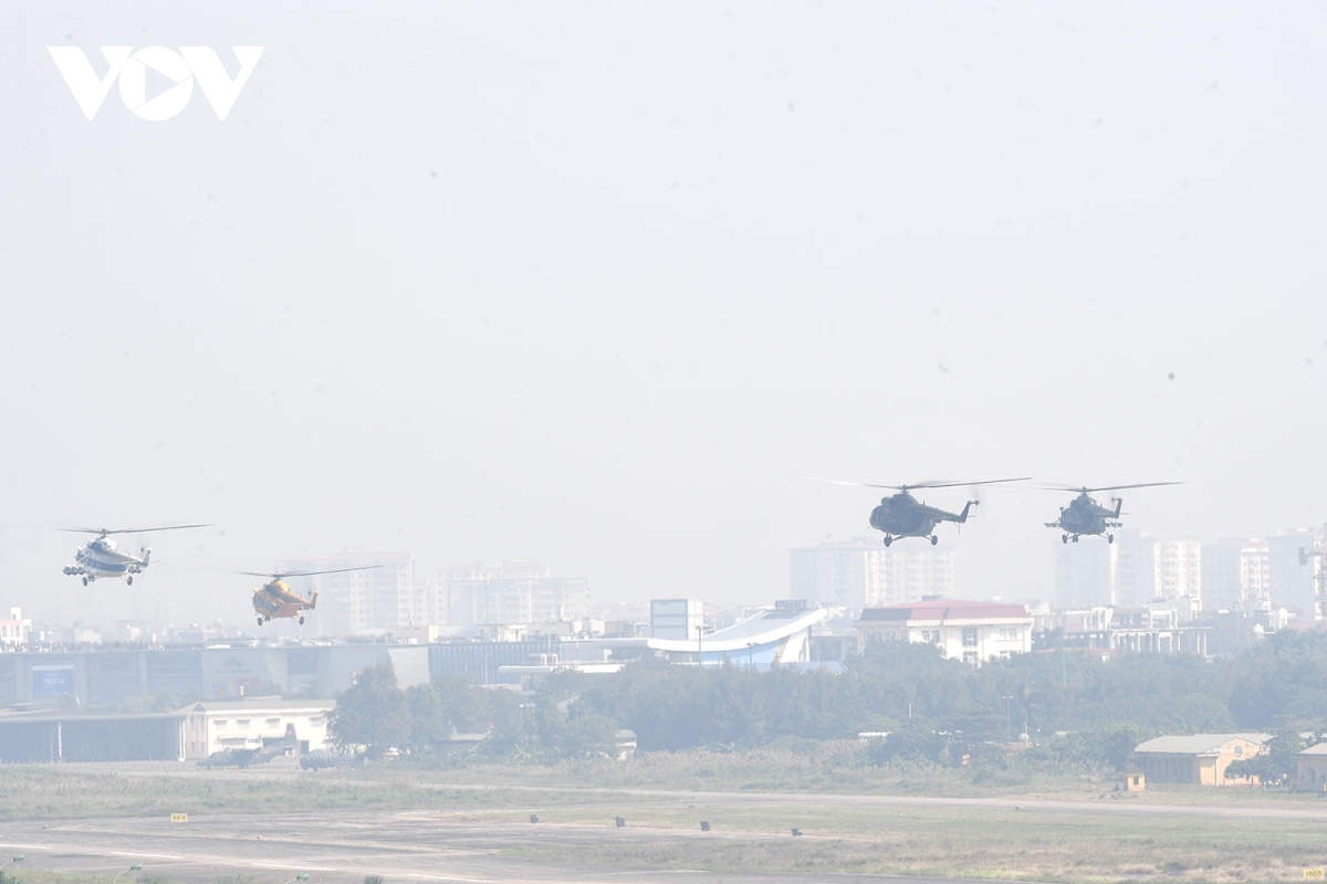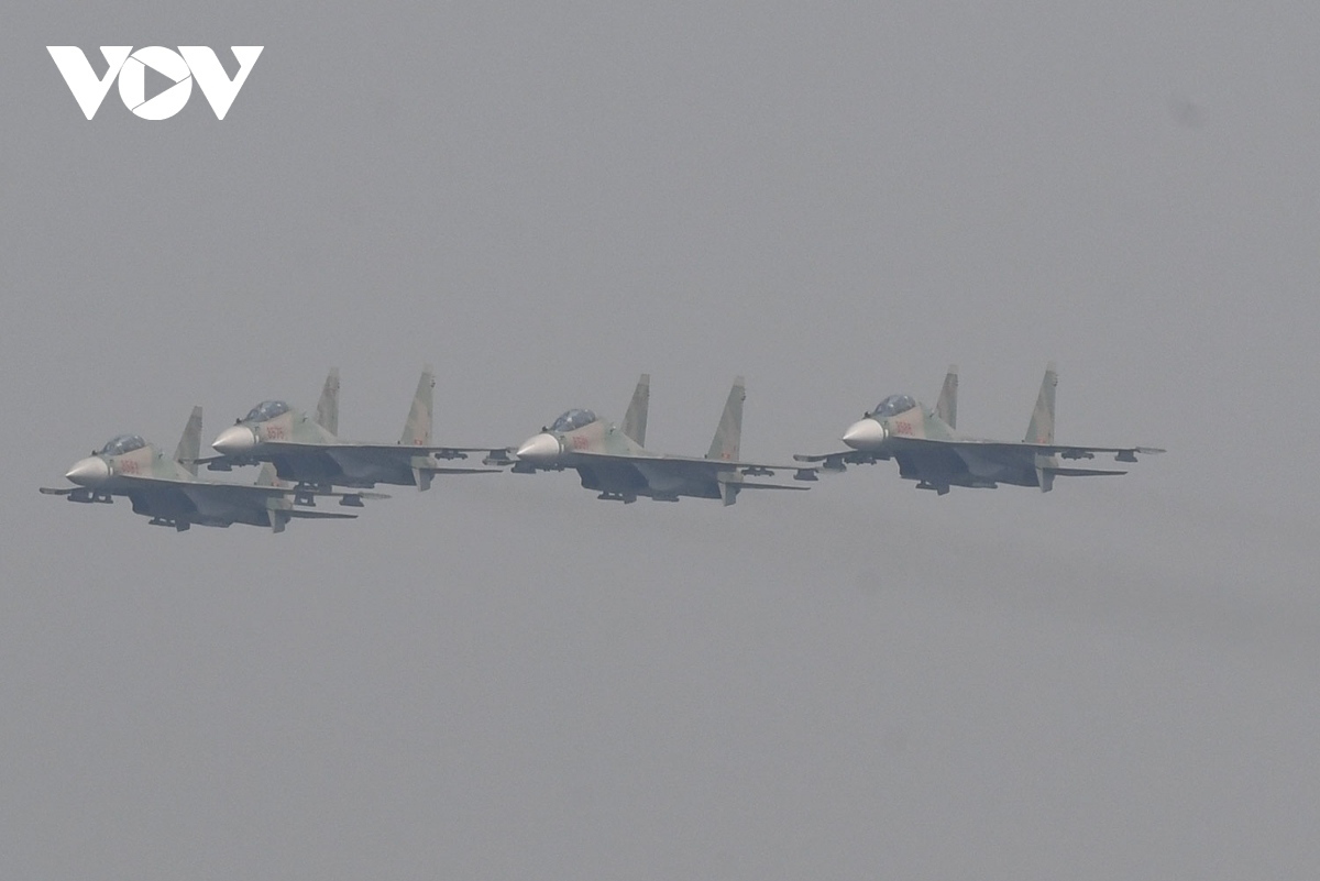 Su-30MK2 fighter aircrafts rehearse at Gia Lam Airport in the morning of November 3, 2022. |