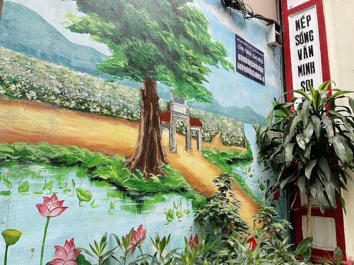 The murals were decorated by the Women's Union of Buoi Ward, at Giap Dong village’s gate. |