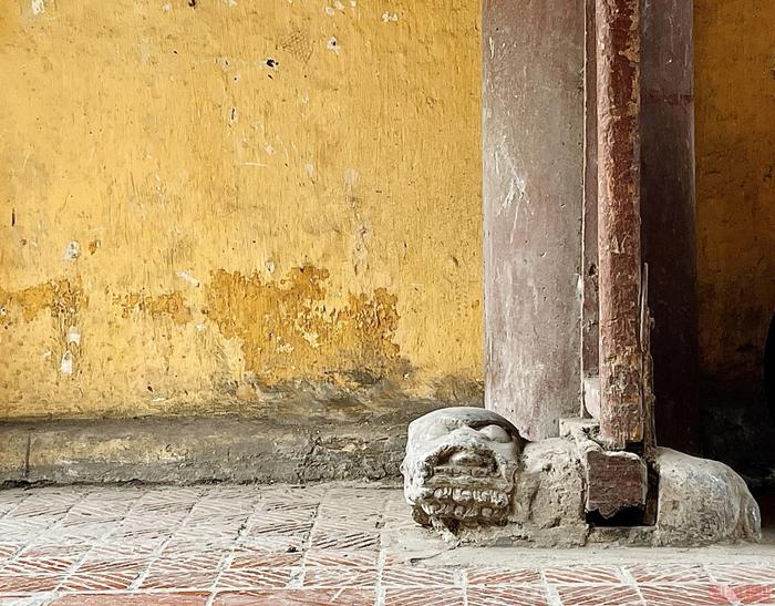 Cai gate was built with a wide landing and two sculptures of ‘nghe’ (a fictional creature with a lion-like head, long tail and dog-like body) on both sides. |