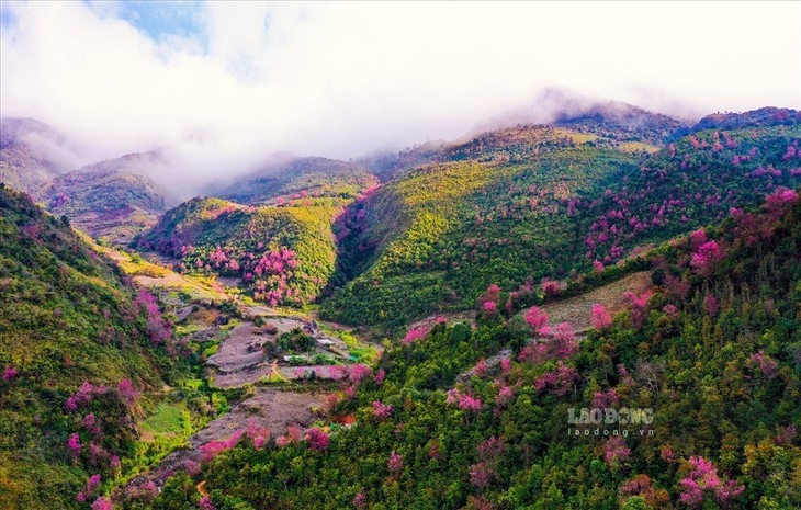 In December, Mu Cang Chai rural district in Vietnam’s northwestern region is coated in pink wild peach blossoms. (Photo: Thinh Dao) |
