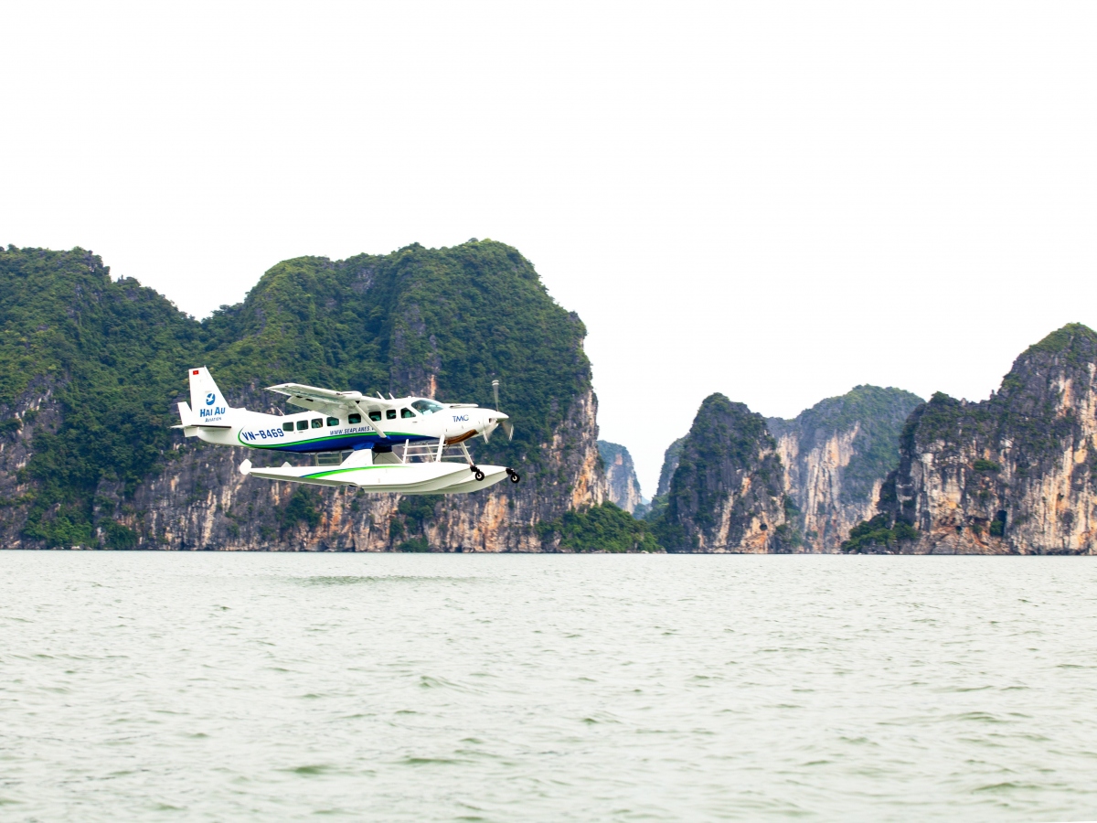 | Tourists should not miss experiencing a seaplane flight route from Ha Long City to Co To Island. The trip takes some 15 to 17 minutes to complete, with passengers having the opportunity to view Ha Long and Bai Tu Long bays from high above. (Photo: Phan Dau) |