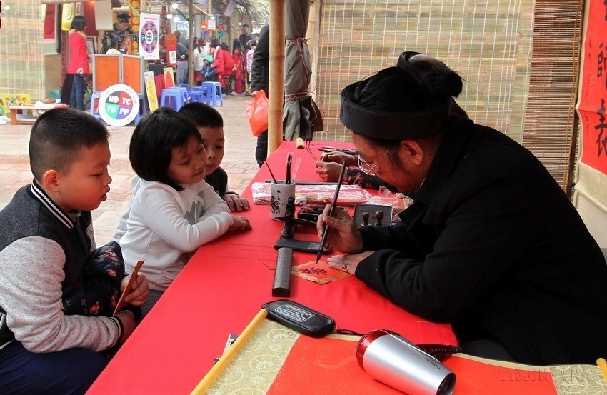 People often go to the Temple of Literature in Hanoi and Pho Ong Do (Teachers' street) in Ho Chi Minh City to ask for the words which best expresses their wishes and determination in the New Year. (Photo: VNA) |