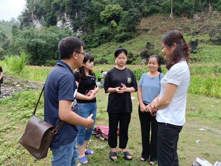 | Nguyen Sy Hao (first from left), VOV4 reporters, and the guests of “Overcoming adversity.” |