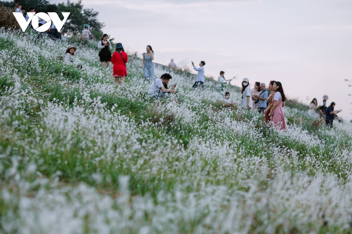 The white reed field located on Long Bien-Xuan Quan road has become a hugely popular destination among the people of Hanoi over the past week. |