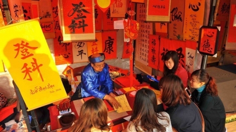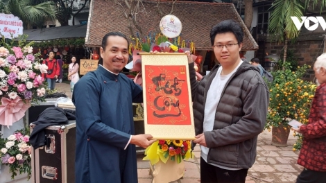 (VOVWORLD) - The first days of the new Lunar year are sacred to the Vietnamese people, the time for everyone to make wishes. A number of traditional customs have been upheld during Tet, including displaying calligraphy works.