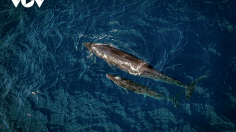 (VOVWORLD) - Blue whales are seen swimming off the coast of De Gi beach in Phu Cat district, Binh Dinh province in recent days, drawing much public attention.