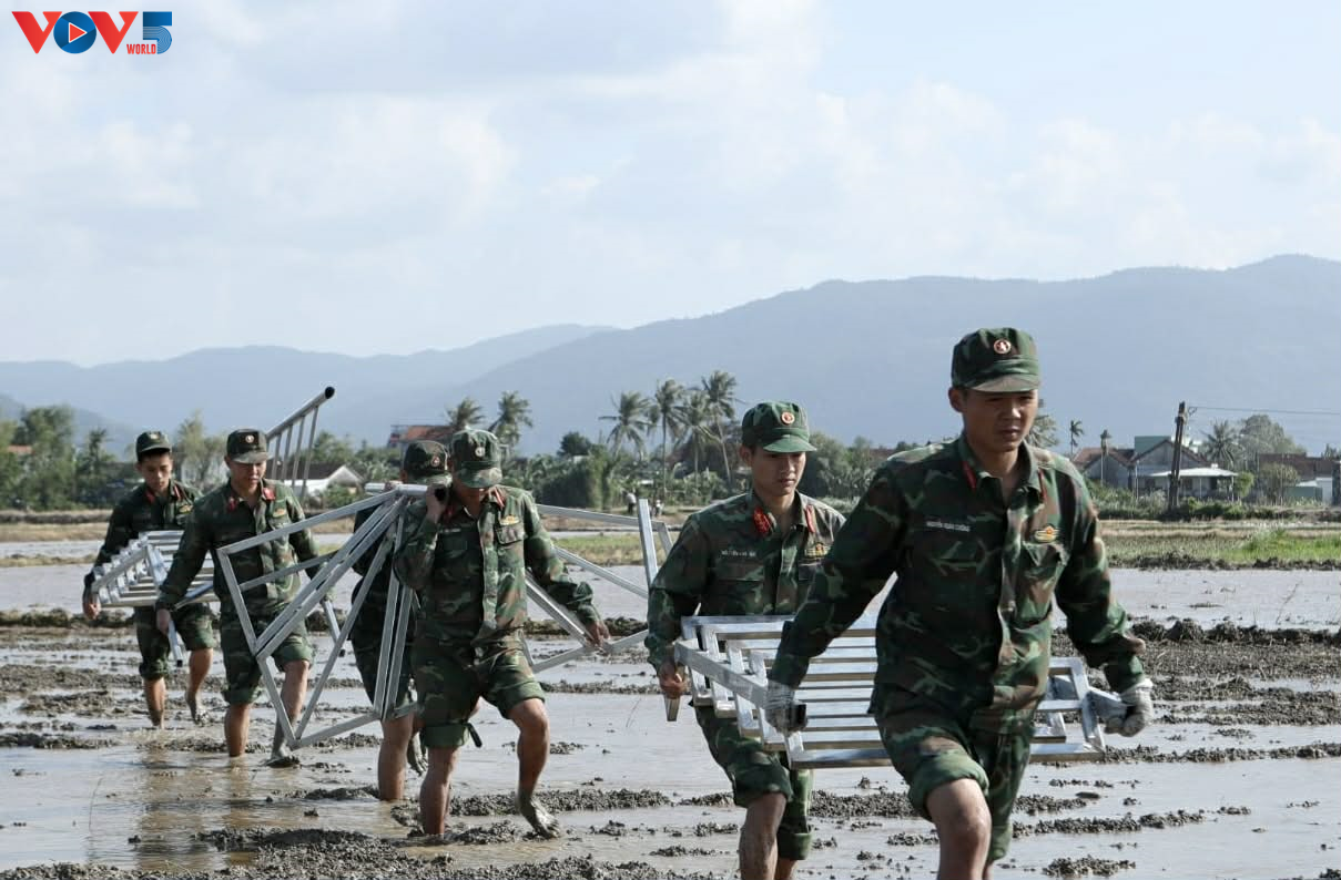 As of December 1, 2025, following historic floods, Dak Lak Provincial Military Command, Military Region 5, and the Defense Ministry have deployed more than 5,000 officers and soldiers and 144 vehicles of various types to help residents repair and rebuild homes and damaged irrigation structures across the province.