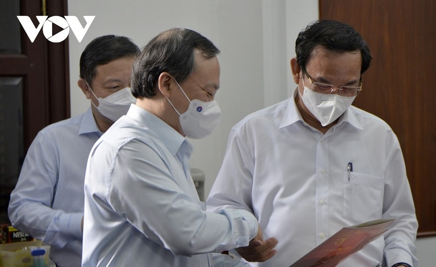 Working with Secretary of the Ho Chi Minh City Party Committee Nguyen Van Nen on Wednesday, Mr. Sy congratulated the city on achieving outstanding results in socio-economic recovery and overcoming the difficulties of the 4th wave of COVID-19 pandemic.