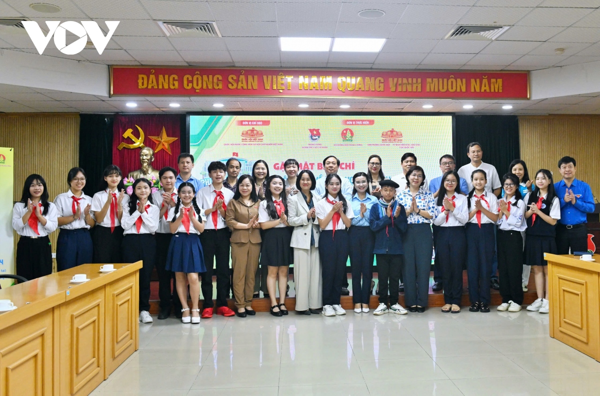 Child delegates take a group photo at a press conference held in Hanoi on September 23, 2024 by the Ho Chi Minh Communist Youth Union, the Central Committee of the Youth Pioneer Council, and the Office of the National Assembly. |
