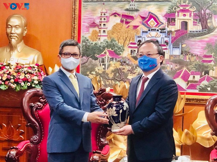 Meeting with Indonesian Ambassador to Vietnam Denny Abdi in VOV head office in Hanoi on Wednesday, Mr. Sy affirmed that VOV’s Indonesian service is one of the foreign language radio channels born early in VOV's 76-year history. He expressed his hope that through the Ambassador, Indonesia would create more favorable conditions for the VOV Bureau in Indonesia to inform about bilateral relations and outstanding activities of ASEAN. Besides, VOV also wants to strengthen cooperation with National Radio Indonesia (RRI) and other the media agencies, he said.