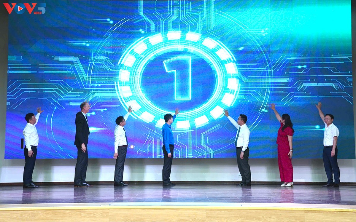 Delegates launch a digital innovation competition for youths with the theme 'Bridging the Digital Divide.' (Photo: Kim Thanh/VOV) |