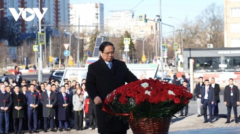 (VOVWORLD) -Prime Minister Pham Minh Chinh and the high-level Vietnamese delegation laid flowers at President Ho Chi Minh Monument on Monday in Moscow during his official visit to Russia.