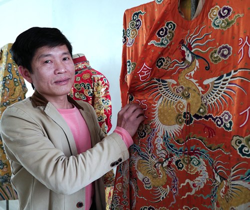 “For normal embroidery, the artisan can freely apply his or her creativity to the items, but royal robes requires specific techniques. The robes are made entirely of silk and embroidered with different kinds of threads. Different techniques are used for different designs and patterns. I had to research the restoration of royal robes and it took me 5 years to complete one,” said Gioi.