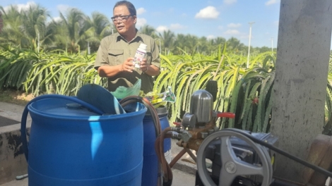 (VOVWORLD) - 58-year-old Le Van Thuy from the southern province of Tien Giang is recognized by the Government as an outstanding national farmer. His 1.8ha dragon fruit is considered a role model in applying science and technology in agricultural production following the Good Agricultural Practices which brings about high productivity and export values.