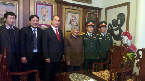 (VOVworld) - 16 декабря во второй половине дня председатель ЦК Отечественного Фронта Вьетнама (ОФВ) Нгуен Тхиен Нян навестил семьи бывших министров обороны, бывших руководителей Партии и Государства Вьетнама и военачальников Вьетнамской народной армии. Нгуен Тхиен Нян выразил глубокую признательность бывшим главам и руководителям Министерства обороны за самоотверженность и вклад в успех вьетнамской революции за прошедшие 70 лет. В семьях генералов армии Во Нгуен Зяпа, Ван Тиен Зунга, Хоанг Ван Тхая, Ле Чонг Тана, Доан Кхе и генерал-полковника Чу Ван Тана председатель ЦК ОФВ Нгуен Тхиен Нян преподнес благовония в память о них, выразил им благодарность за вклад в дело национального освобождения.
