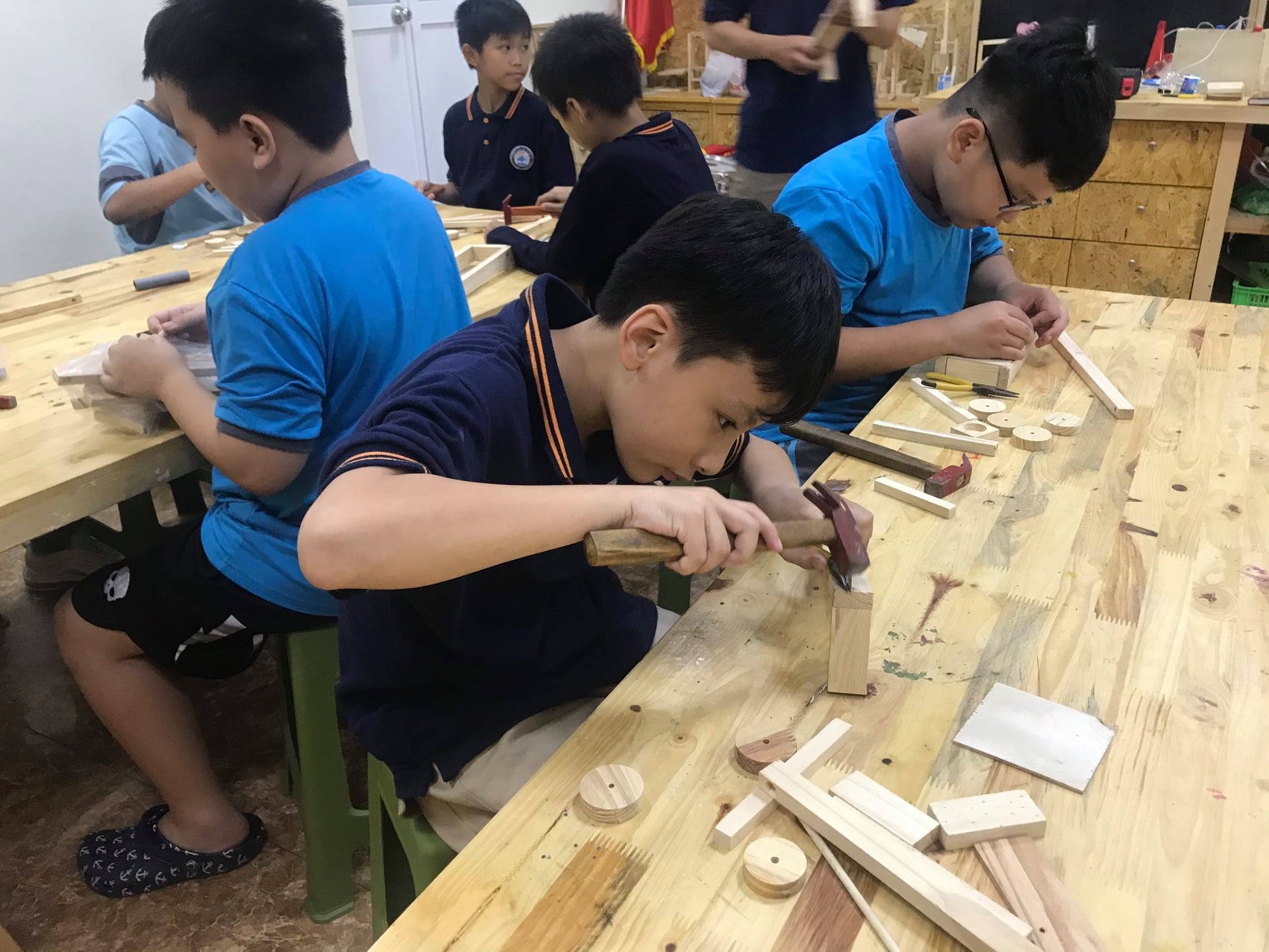 В Креатив-гараже дети самостоятельно используют столярные инструменты, такие как рубанок, долото, ножовка, для создания готового изделия. При этом они получат новые навыки, и главное, сами занимают себя делом. Ву Вьет Зунг – учитель в Креатив-гараже отметил: «Для детей от 4 до 6 лет мы организуем мероприятия, знакомящие их с кубиками и цветами. А дети от 7 до 12 лет могут самостоятельно использовать столярные инструменты для создания любимых предметов, таких как модели самолетов, автомобилей и др».