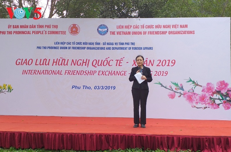 Ежегодно с наступлением весны представители обществ дружбы Вьетнама и зарубежные друзья встречаются в ходе программы «Дружественная весенняя прогулка», вместе посещают различные провинции и города Вьетнама с целью больше узнать о жизни местных жителей и культурных традициях каждого района страны. В этом году такое мероприятие состоялось в храмовом комплексе королей Хунгов в городе Вьетчи провинции Футхо, где находятся священные горы и поклоняются королям Хунгам – основателям древнего государства Вьетнама. Председатель Союза обществ дружбы Вьетнама Нгуен Фыонг Нга сказала: «В этом году мы совместно с Народным комитетом провинции Футхо и Союзом обществ дружбы этой провинции организовали мероприятие для зарубежных гостей и представителей обществ дружбы нашей страны в храмовом комплексе королей Хунгов, который является священным для каждого вьетнамца комплексом культурно-исторических памятников. Мы пришли сюда, чтобы выразить своё почтение и свою признательность нашим предкам – королям Хунгам за основание древнего государства Вьетнама, а также для того, чтобы зарубежные друзья смогли понять традицию вьетнамского народа «Пьёшь воду – помни о её источнике», который всегда помнит заслуги своих предков в основании страны».