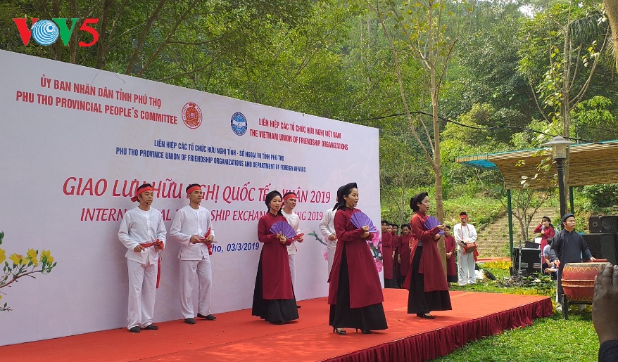 Во дворце Киньтхиен на вершине горы Нгиалинь на территории храмового комплекса королей Хунгов участники программы «Дружественная весенняя прогулка 2019 года» с глубоким почтением устроили церемонию зажигания благовоний в память о королях Хунгах. После этого, они посадили памятное дерево, осмотрели храмовый комплекс королей Хунгов и насладились народным пением «соан» провинции Футхо в исполнении местных артистов. Благодаря данной программе зарубежные гости узнали о ещё двух объектах нематериального культурного наследия Вьетнама, получивших признание ЮНЕСКО – это культ поклонения королям Хунгам и народное пение «соан» провинции Футхо. Главный представитель американо-канадской организации «Меннонитский центральный комитет» в Ханое госпожа Эва Мазаренко поделилась своими размышлениями: «Здесь мы чувствуем себя очень хорошо. Нам приятно и интересно видеть как вьетнамцы ценят себя, свою собственную историю, которая даёт инспирацию всем людям. Мы пришли сюда в составе делегаций со всего мира и было приятно видеть здесь не только официальных людей, но и простых вьетнамских жителей, которые тоже пришли сюда, просто вспомнить про своё начало, про свою богатую историю, что делает честь королям-основателям. Было очень интересно, очень впечатлительно».