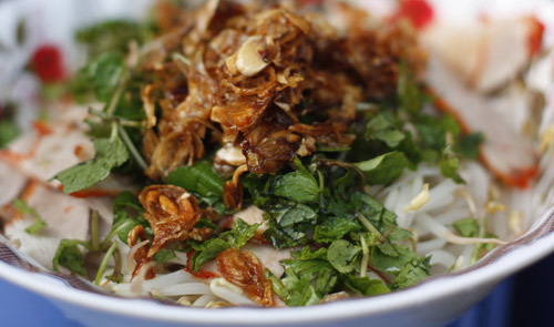 Замаринованную свинину нарезают тонкими ломтиками, чтобы соус быстро впитался в мясо и оно стало мягче. А арахис и сухой лук делают это блюдо более вкусным и привлекательным. В «Фо Тиу» можно добавить острый соус или соевый соус в зависимости от вашего вкуса. Живя в Ханое и будучи любителем этого блюда, Ван Тхи и Ха Фыонг поделились своими размышлениями: