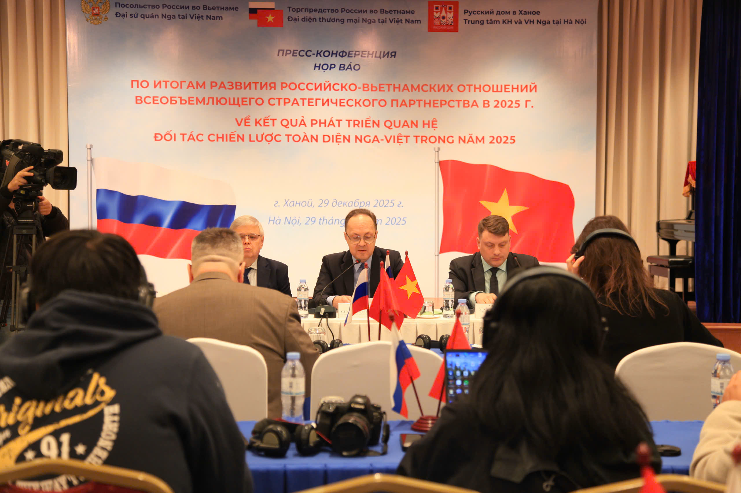 Пресс-конференция, посвященная итогам развития российско-вьетнамских отношений в 2025 г. Фото: Русский дом в Ханое