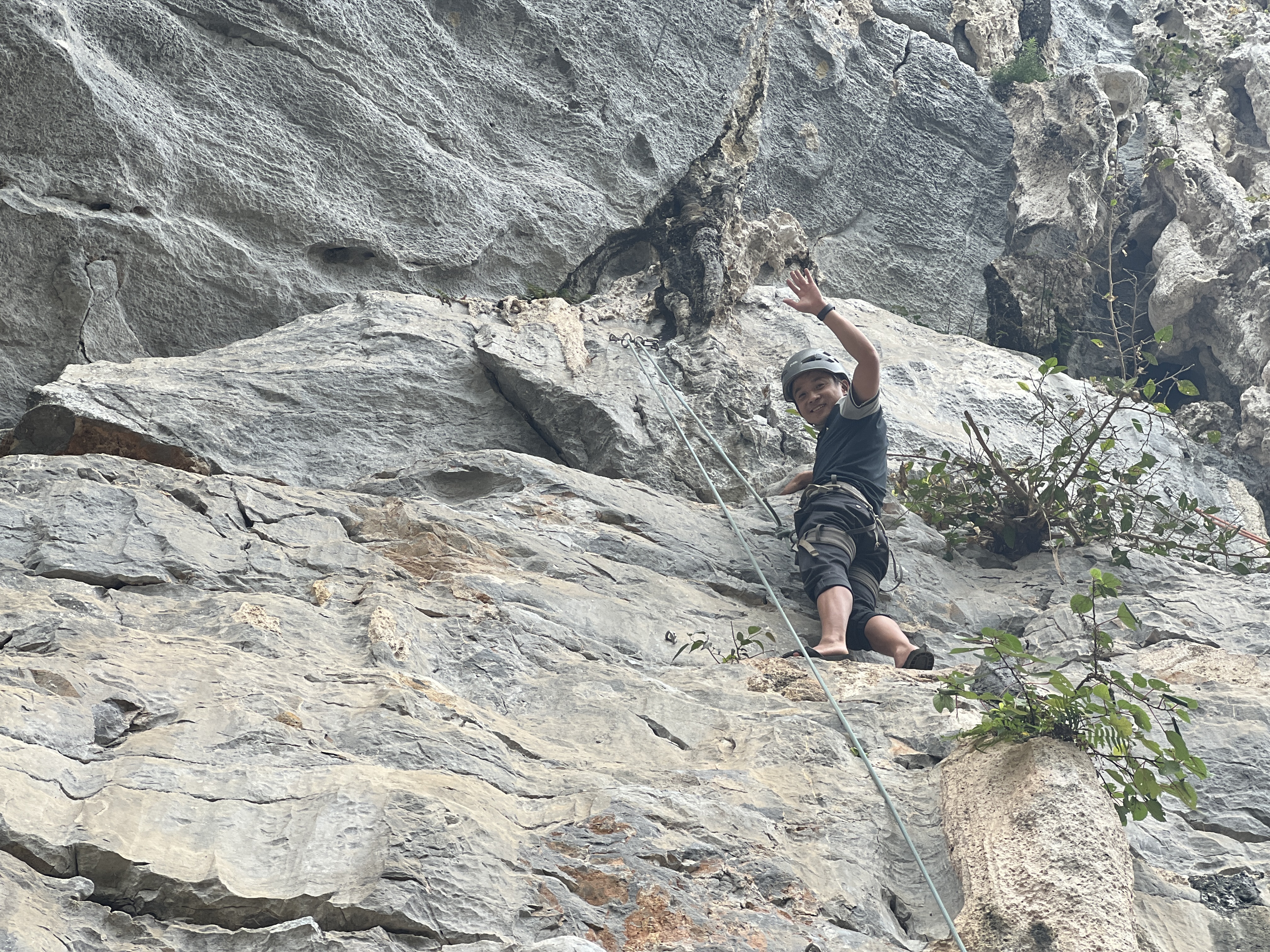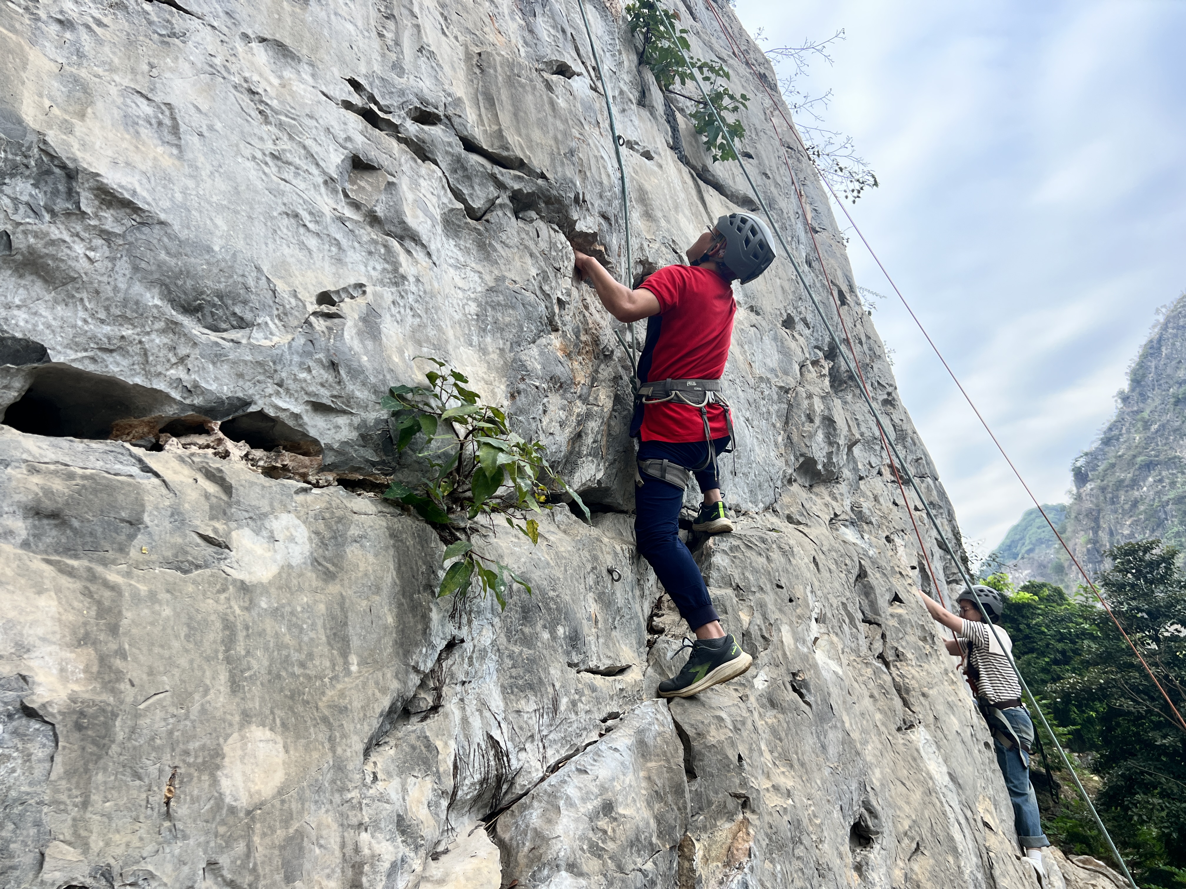 Данг Ван Зу впервые успешно преодолел сложный маршрут в скалолазании. Он говорит: «Я впервые совершаю подобное восхождение. Ощущения потрясающие, даже немного пугающие. При передвижении по скалам необходимо опираться на руки и ноги. Я также наблюдал за другими и учился их способам подъема на горные вершины. Достичь вершины и превзойти свои собственные пределы - это невероятное чувство».
