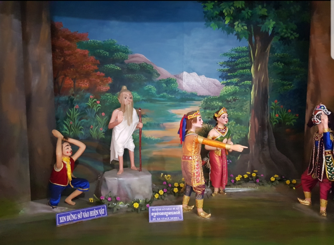 Помимо артефактов, связанных с производством, бытом и религиозной жизнью, в выставочном пространстве также представлены миниатюры двух типичных видов искусства кхмеров Робам и Зукэ, которые были признаны Министерством культуры, спорта и туризма объектами нематериального культурного наследия государственного значения. Здесь также представлены миниатюры главного зала пагоды Кх'Леанг и лодка Нго. Замдиректора Департамента культуры, спорта и туризма провинции Шокчанг Шон Тхань Лием отметил: Ежегодно 15-го числа октября по лунному календарю проводится гонка на лодках Нго. Этот фестиваль был занесен в книгу рекордов Гиннесса по самому большому количеству лодок и участников фестиваля во Вьетнаме в 2005 году. В выставочном доме о культуре народности Кхмер также представлены артефакты, отражающие жизнь кхмеров, их производственные инструменты, ремесленные изделия, миниатюрные статуэтки кхмерских пагод уникальной архитектуры и 2 типичных вида искусства кхмеров Робам и Зукэ. В рамках экскурсии по выставочному дому посетителям подробно рассказывают обо всех экспонатах.