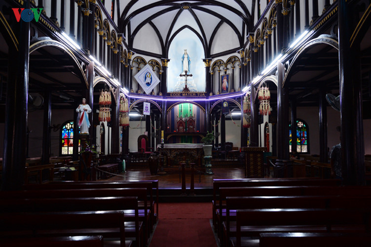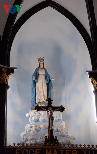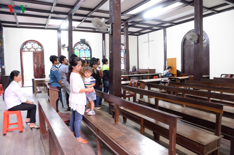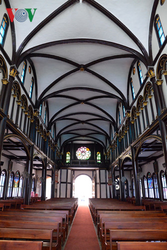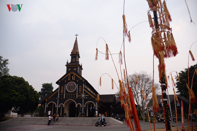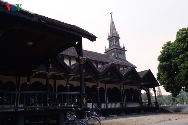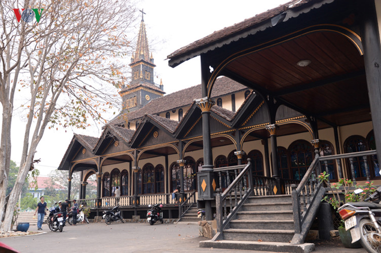 (VOV) -100-летняя церковь провинции Контум, или так называемая деревянная церковь, является образцом гармоничного сочетания Романского архитектурного стиля с традицией народности Бана строить деревянные дома на свях, характерной для плоскогорья Тэйнгуен.