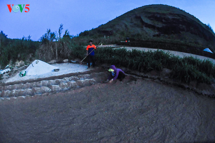 Крестьяне возделывают землю для выращивания лука и чеснока.