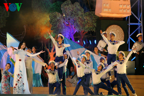 (VOVworld) - В связи с Днем вьетнамской семьи 28 июня, в минувшую субботу в Деревне культуры и туризма народностей Вьетнама в городке Шонтэй под Ханоем Министерство культуры, спорта и туризма организовало художественную программу «Большая семья вьетнамских народностей совместно строит и защишает Родину».