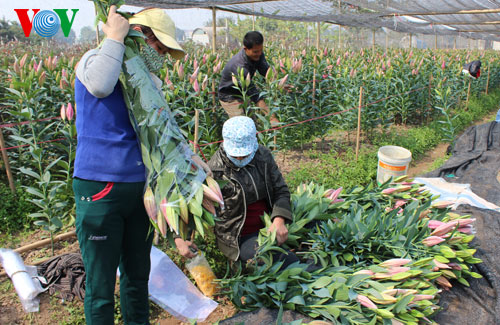 (VOV) – В эти дни в цветочной деревне Тэйтыу в ханойском уезде Тылием царит новогодняя атмосфера. Отсюса поставляются на рынки центральной части Ханоя и прилегающих провинций разные цветы, такие как хризантемы, розы, лилии, герберы, георгины... для встречи Нового года по лунному календарю.