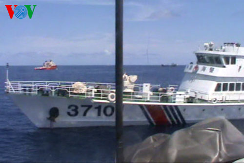 (VOV) - Фотографии с места незаконного установления Китаем буровой платформы «Хайян Шию-981» в эксклюзивной экономической зоне Вьетнама показывают, как китайские корабли умышленно нападают на суда Береговой охраны и Рыбоохраны Вьетнама. Китайская сторона пытается препятствовать выполнению силами Береговой охраны и Рыбоохраны Вьетнама своих задач.