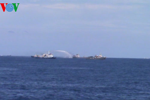 | Китайская сторона применяет водомет для нападения на вьетнамское судно |